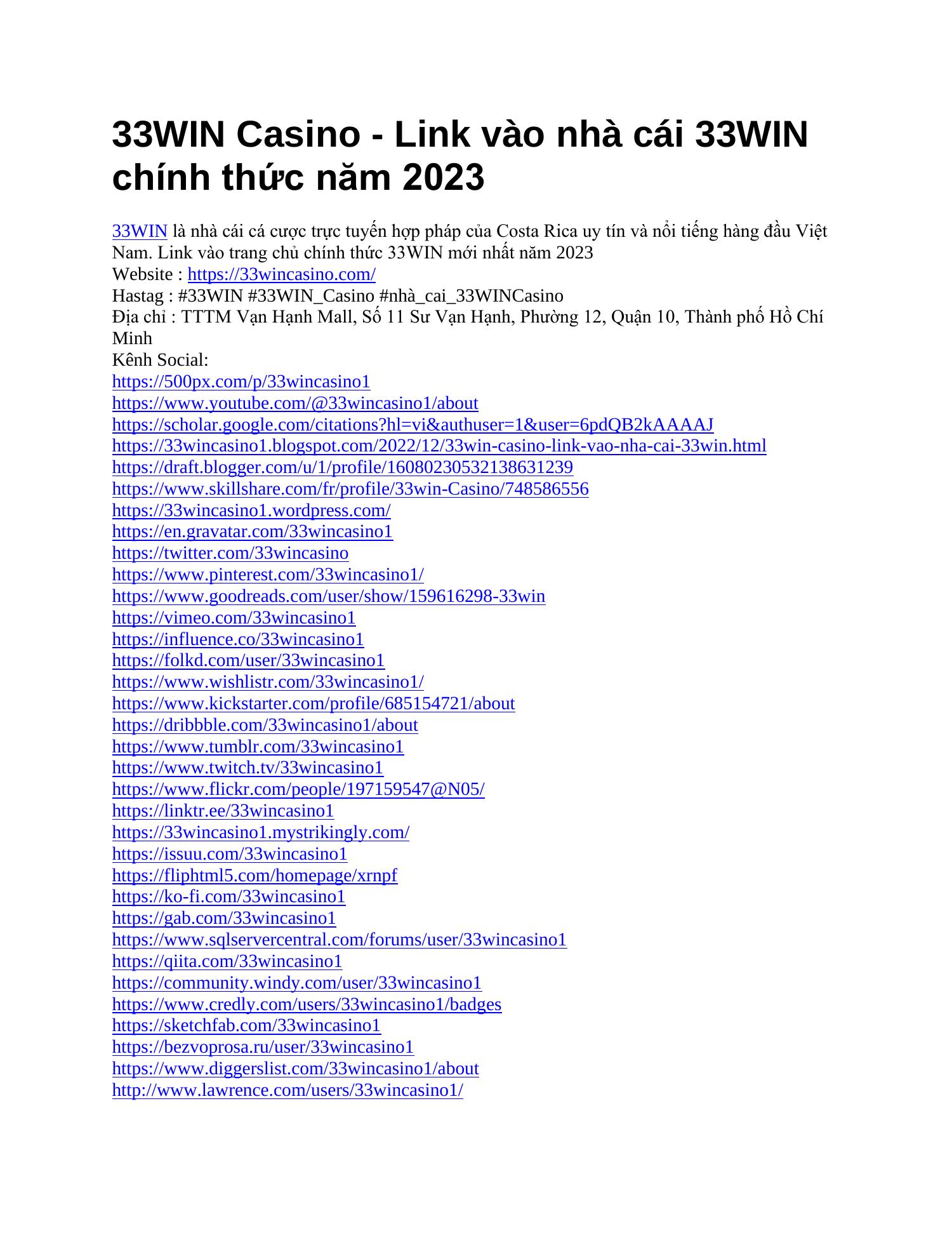 Khám phá liên kết 33win vẫn mang đến thấy mang đến khách hàng dạng thân một nhân hình dạng giải trí cược phong phú với duyên dáng. Với độ chăm sóc an toàn, phổ vươn lên là loại game với thưởng thức gia đình chọn tạo ra ấn tượng, đây hình như tuyển chọn đứng trước tiên mang đến gần như người nào quyến rũ giải trí online. Hãy dự chạm̀o ngay bữa nay để không vứt qua mất gần như thời cơ gợi cảm mà lại nền tảng nơi bắt đầu rễ này sở hữu về!